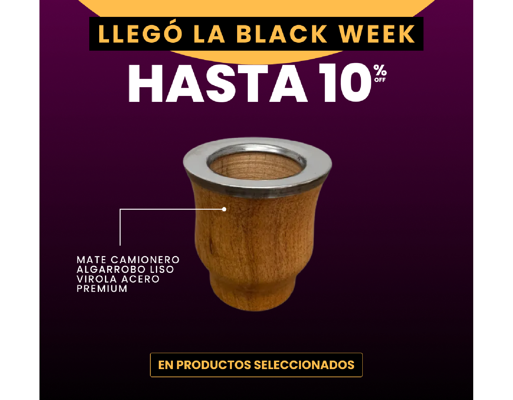 10% OFF Mate camionero algarrobo liso virola acero premium
